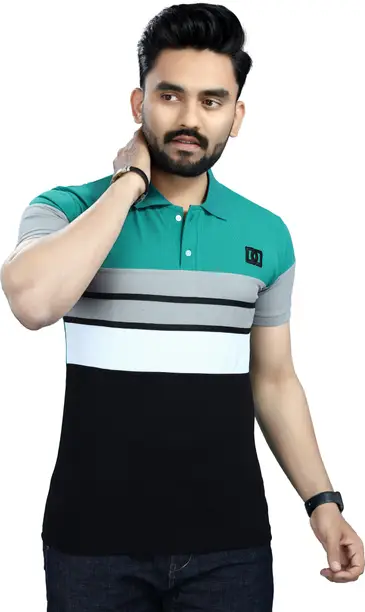 Make a stylish statement with this Men’s Colorblock Polo Neck T-Shirt in a bold dark green shade. Designed with a
