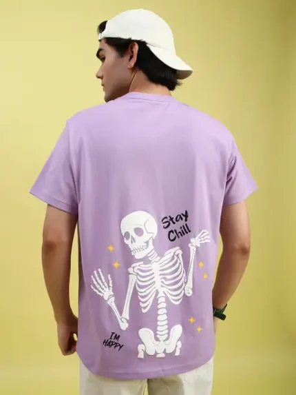 Men Printed Round Neck Cotton Blend Purple T-Shirt
